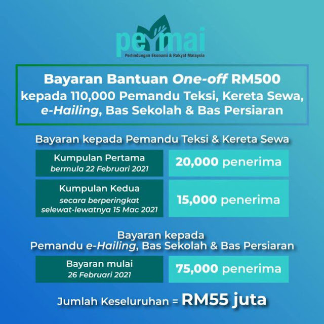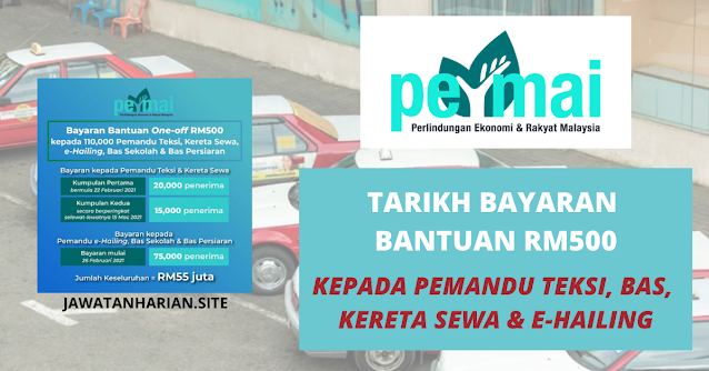 Tarikh rasmi pembayaran bantuan Permai sebanyak RM500 kepada pemandu teksi, bas, bas sekolah dan bas persiaran telah pun dikeluarkan.