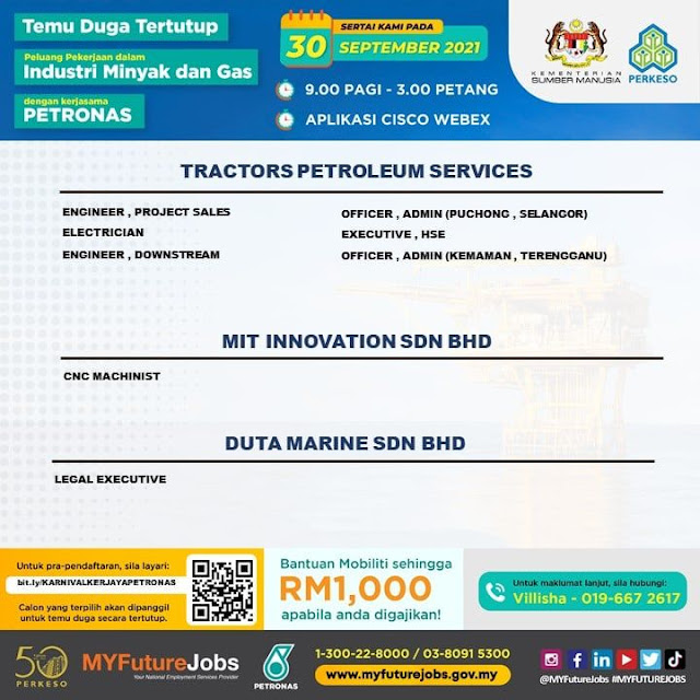 Pemohon hanya perlu membuat pra-pendaftaran untuk sertai temu duga online yang akan dilaksanakan dalam industri minyak dan gas nanti. Terdapat pelbagai peluang pekerjaan yang ditawarkan serta penerimaan Insentif Mobiliti sehingga RM1,000.