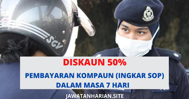 - Diskaun 50% : Jika dibayar dalam masa 1-7 hari (minggu pertama)